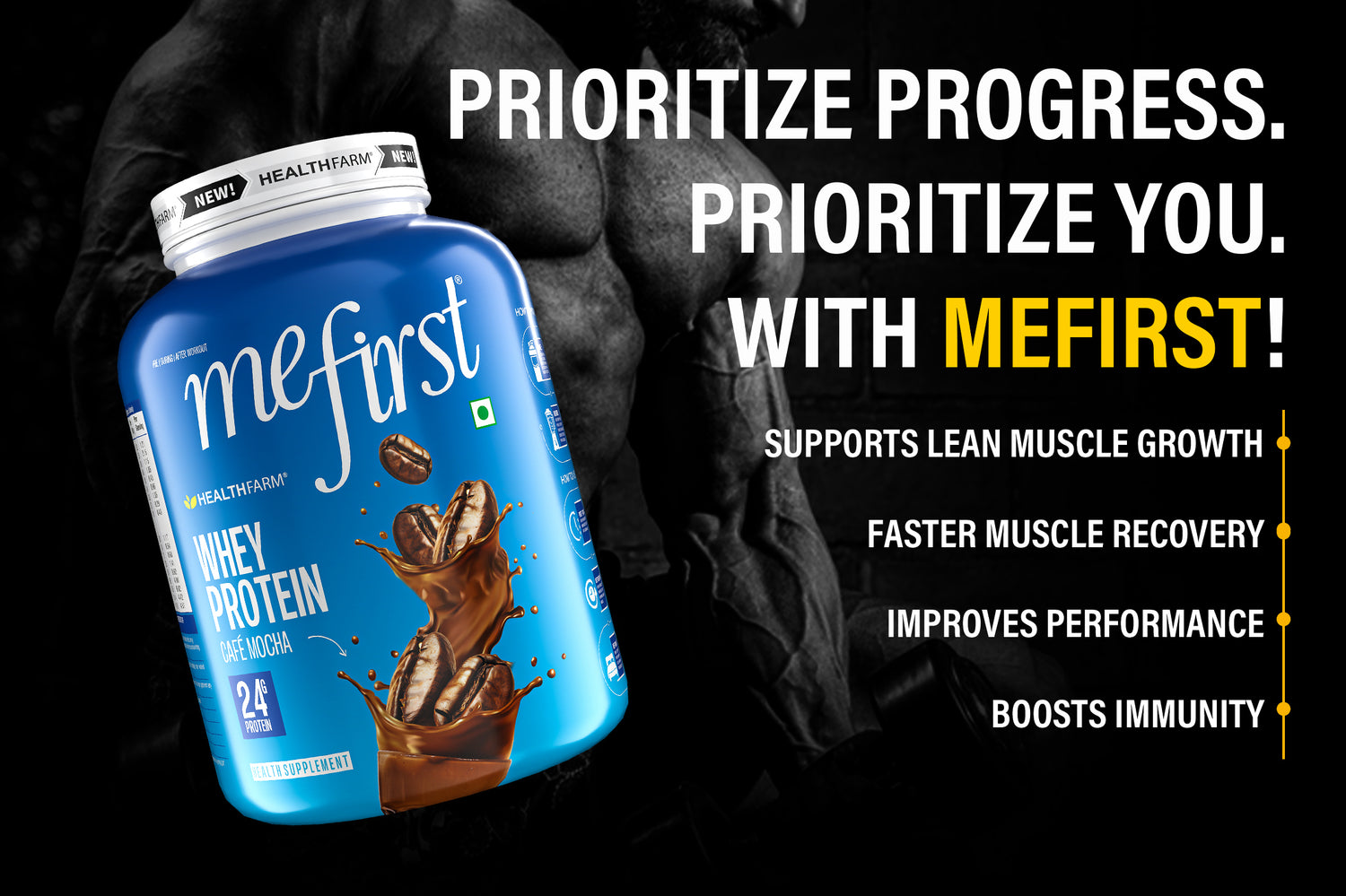 Elevate your fitness with Mefirst Whey Protein, a high-quality blend designed to support muscle growth, recovery, and strength. Each serving provides 24g of pure whey protein from concentrate and isolate, helping you build lean muscle and improve performance. With zero added sugar, Mefirst offers a clean and effective protein source. It also helps reduce fatigue, speed up recovery, and maintain energy levels, making it ideal for athletes, fitness enthusiasts, and anyone aiming for a stronger body.