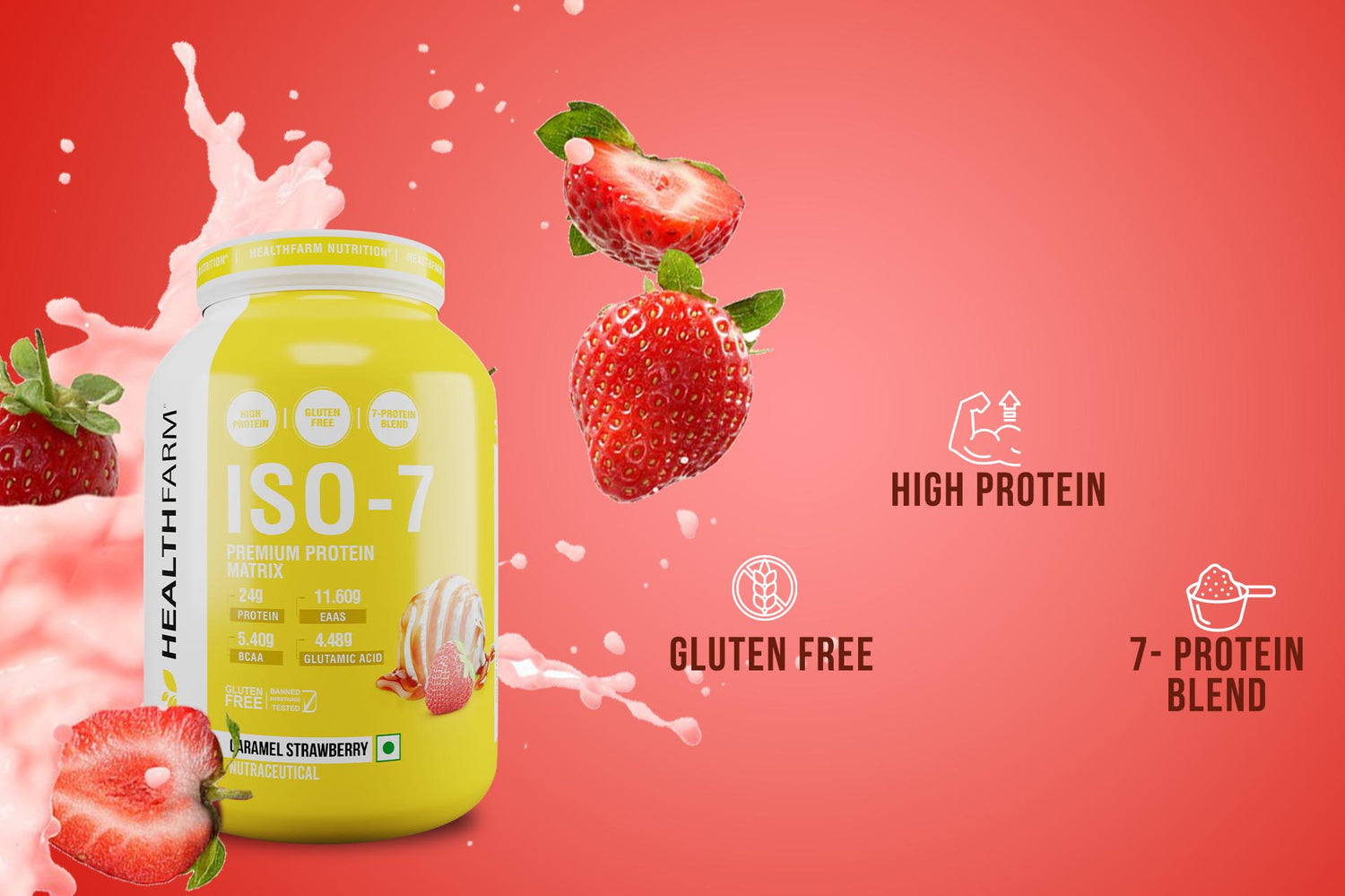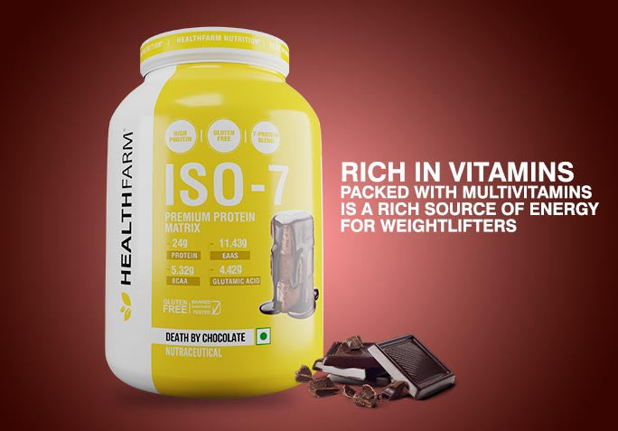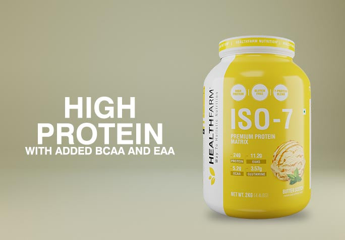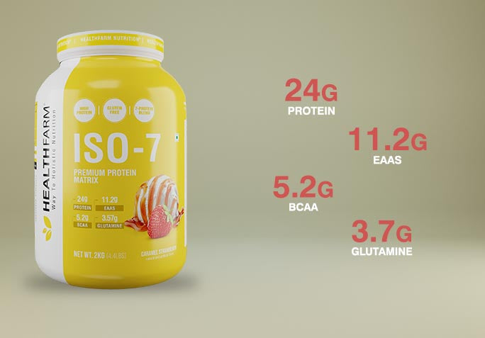 HEALTHFARM ISO 7 is an ideal protein supplement for athletes at all levels, whether you're an advanced athlete, a regular fitness enthusiast, or just beginning your fitness journey. This outstanding supplement harnesses the power of Whey Isolate, BCAAs, Glutamine, and EAAs (Essential Amino Acids). With each serving, you receive 24g of protein, 11.2g of EAAs, 5.2g of BCAAs, and 3.57g of Glutamine, providing essential amino acids necessary for muscle growth, increased muscle size, reduced soreness, and improved workout endurance.