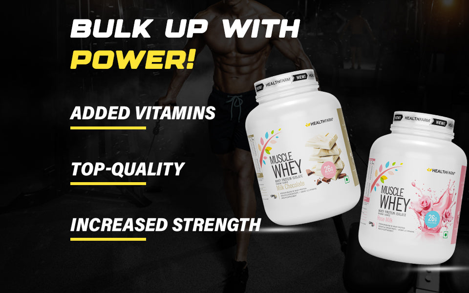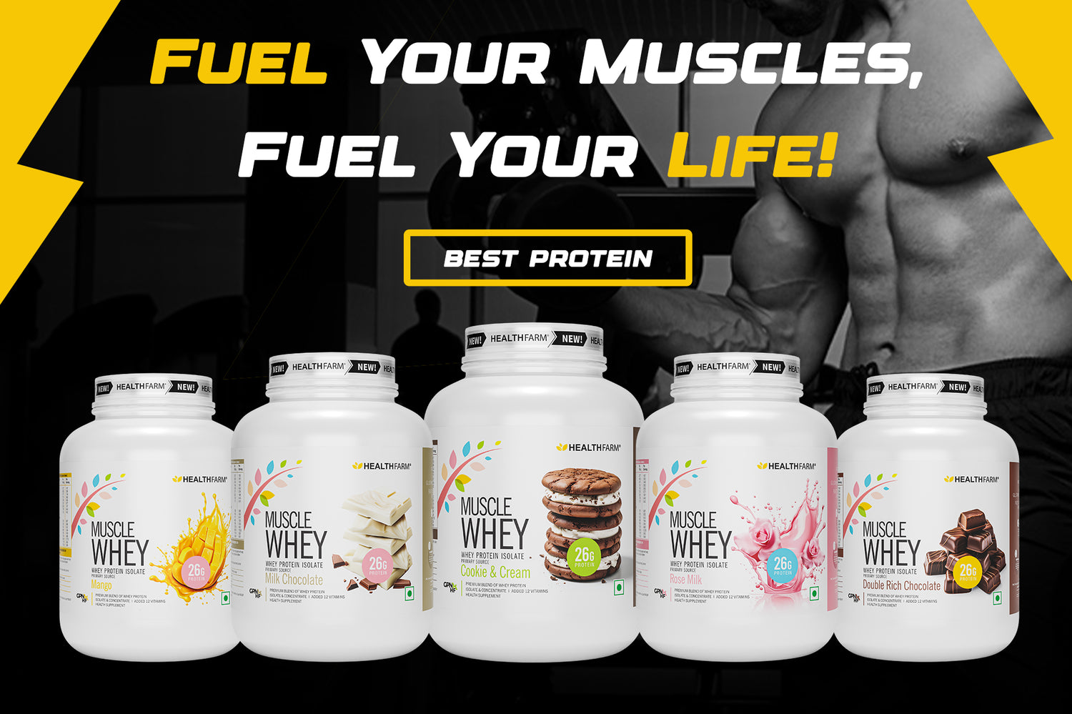 When it comes to selecting the best whey protein supplement, HealthFarm Muscle stands out as a trusted brand known for delivering outstanding results. With 26g of high-quality protein per serving, our product provides you with a substantial amount of protein, supporting muscle development and recovery. It comes in various delectable flavors, making it a delightful addition to your daily routine. The powder dissolves easily, creating a smooth and enjoyable protein shake experience. Consuming Whey Protein after a workout helps replenish glycogen stores and aids in muscle tissue repair, facilitating faster recovery.