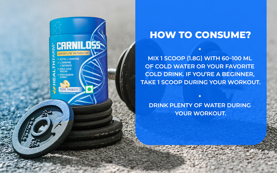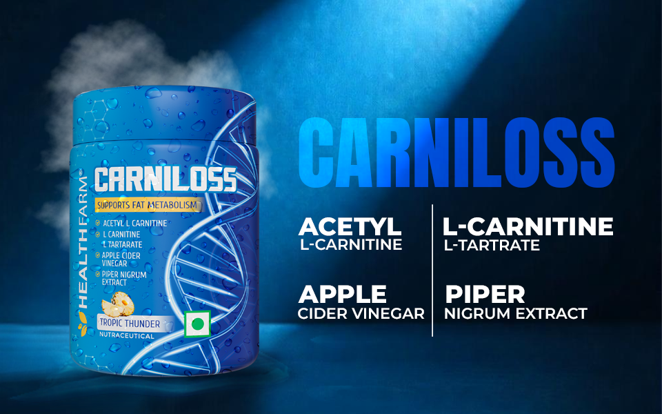 Healthfarm Carniloss is a powerful fat-loss formula designed to boost fat metabolism, energy, and performance. With 55.55% L-Carnitine blend, Garcinia Cambogia, and Caffeine Anhydrous, it helps convert fat into fuel, suppress cravings, and enhance focus. Enriched with Apple Cider Vinegar and Piper nigrum for digestion and nutrient absorption, it supports clean, sustainable weight loss. Ideal for fasted cardio or workouts, it mixes easily in water and comes in delicious Tropic Thunder and Raspberry Lemonade flavours. With zero sugar and a low-calorie formula, Carniloss is perfect for those seeking effective, clean energy and enhanced workout performance.