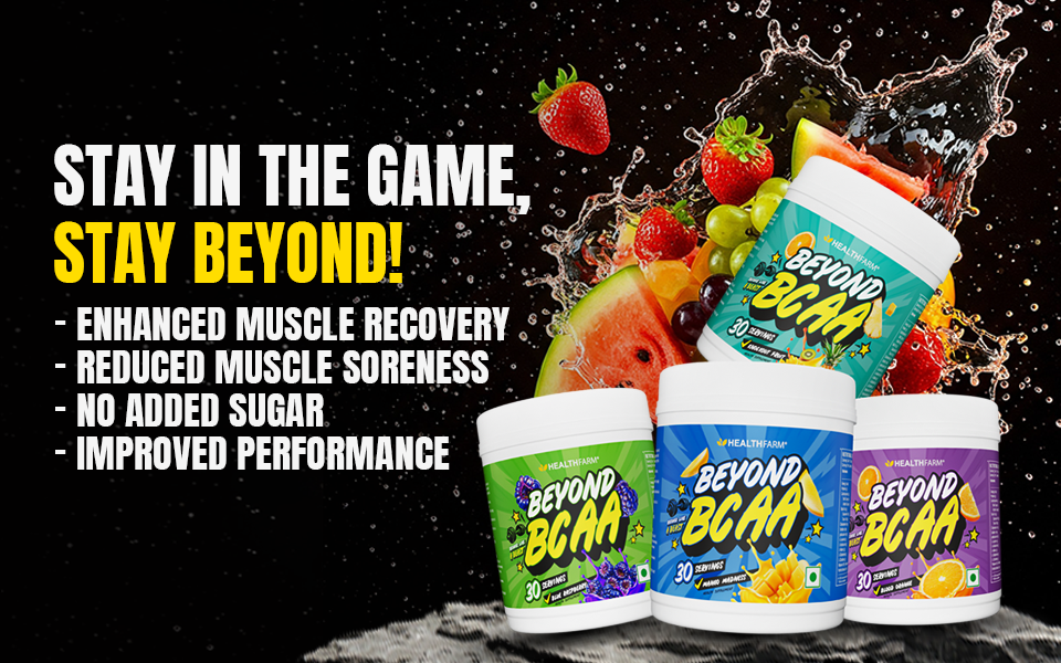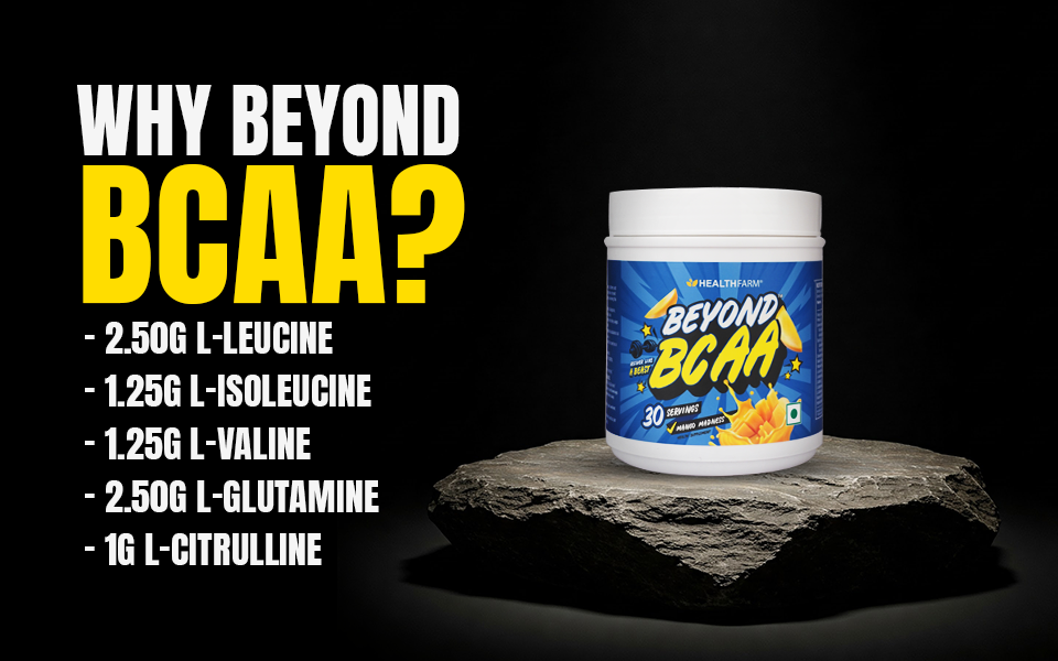 • HealthFarm Beyond BCAA is designed to take your workout performance and recovery to the next level. Packed with 2.50g L-Leucine, 1.25g L-Isoleucine, and 1.25g L-Valine, this advanced formula promotes muscle protein synthesis, enhances endurance, and reduces muscle breakdown. With 2.50g L-Glutamine, it accelerates muscle recovery and minimizes post-workout soreness, ensuring you’re ready for your next session. Additionally, 1g L-Citrulline boosts nitric oxide production, improving blood flow and reducing fatigue.