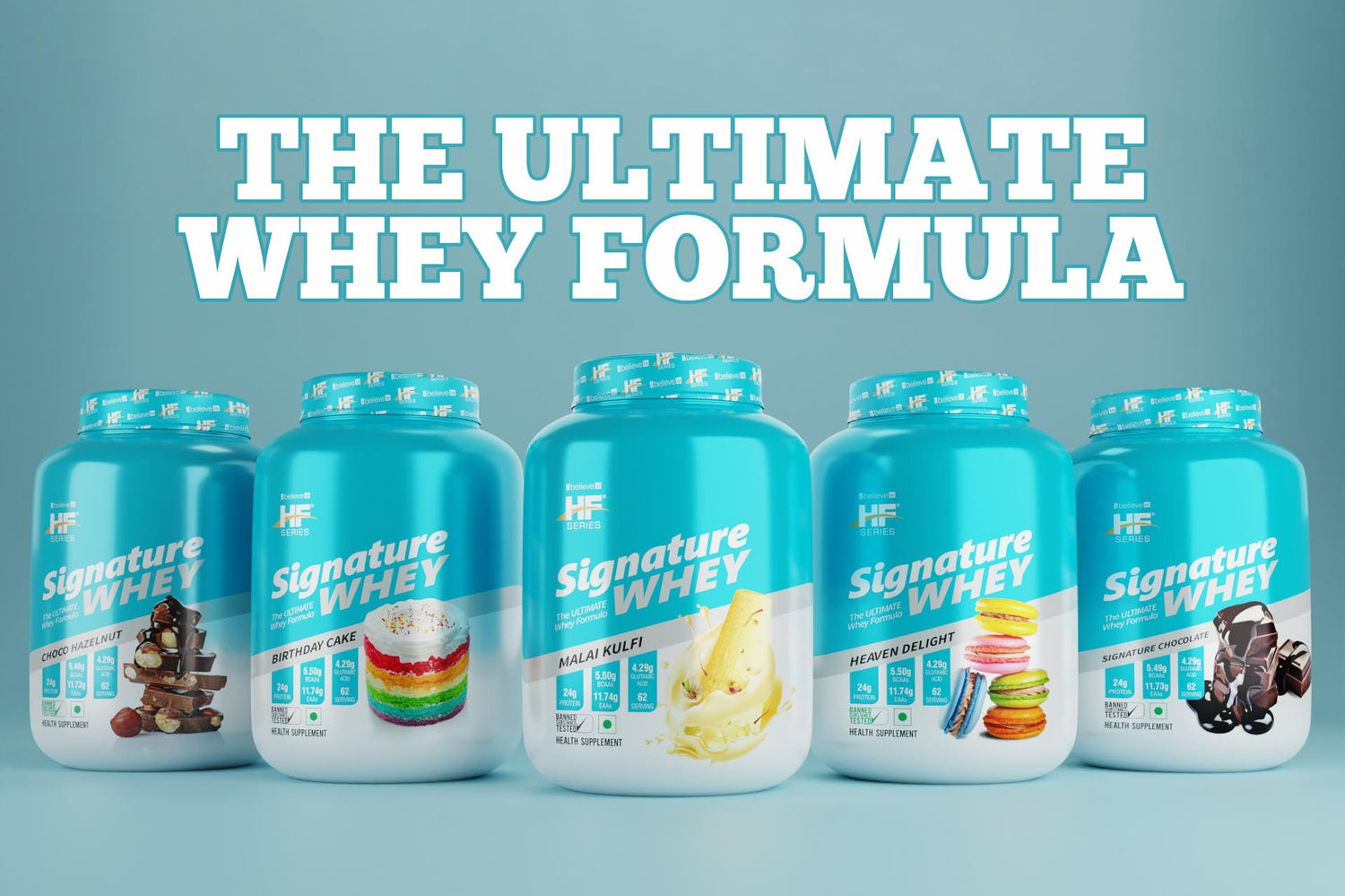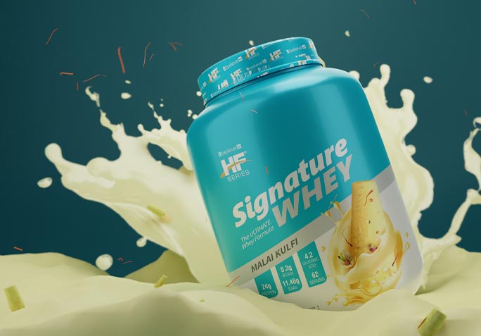 If you are an athlete or sports person then your muscles are craving desperately to have Ultra-Premium Lean Muscle Protein Powder, and only HF Series Signature Whey Protein Powder quest their thirst. Yes, you have read right; SIGNATURE WHEY is a pure protein formula that delivers 24g protein, 5.3g of BCAAs and 4.2g of glutamine, and 28.5g EAAs in one serving scoop (32g). Quick absorption, fully digestible, and easy mixability in water or milk, SIGNATURE WHEY a superior feed for your muscle promise instant muscle recovery, build muscle mass, prevent muscle breakdown, and toned body. Pure whey protein isolate serves your body an adequate amount of amino acids every sports active person needs daily to encourage muscle protein synthesis to increase muscle size and strength.