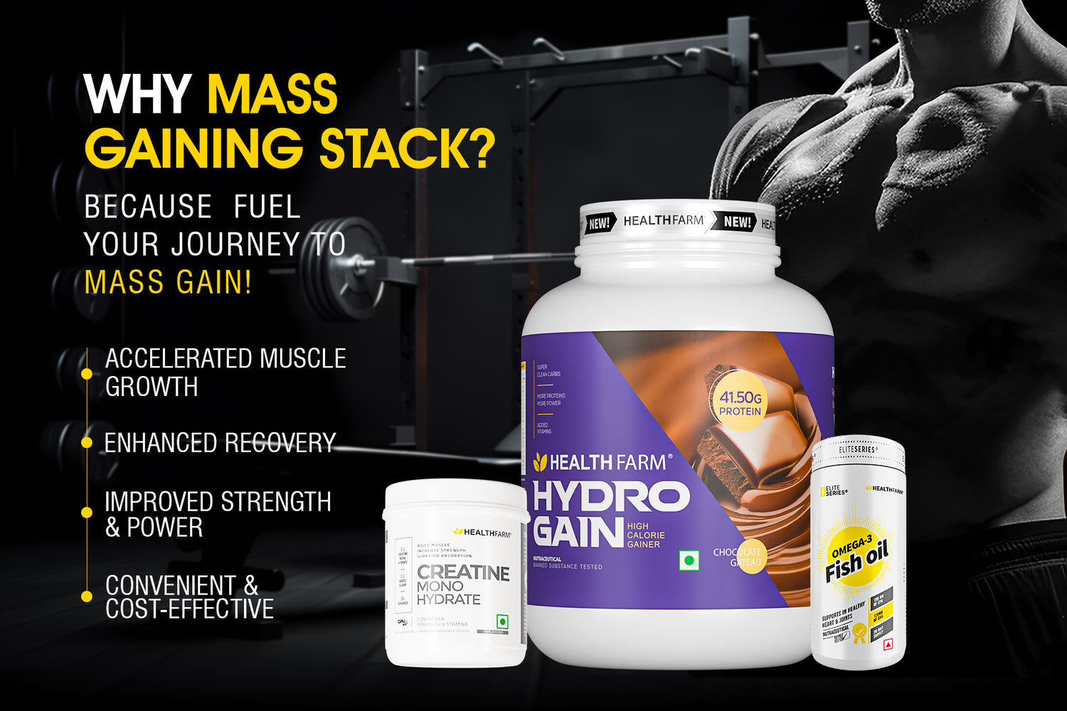The Mass Gaining Stack from Healthfarm is a powerful combination of supplements designed to support your muscle-building goals. This stack includes a high-quality mass gainer powder and creatine monohydrate, both of which are essential for promoting muscle growth and strength. The mass gainer provides a rich source of calories, proteins, and carbohydrates to fuel your workouts and promote muscle recovery. Meanwhile, creatine monohydrate enhances muscle performance and endurance, allowing you to push harder during training sessions. Together, these supplements work synergistically to help you pack on lean muscle mass and achieve your desired physique.