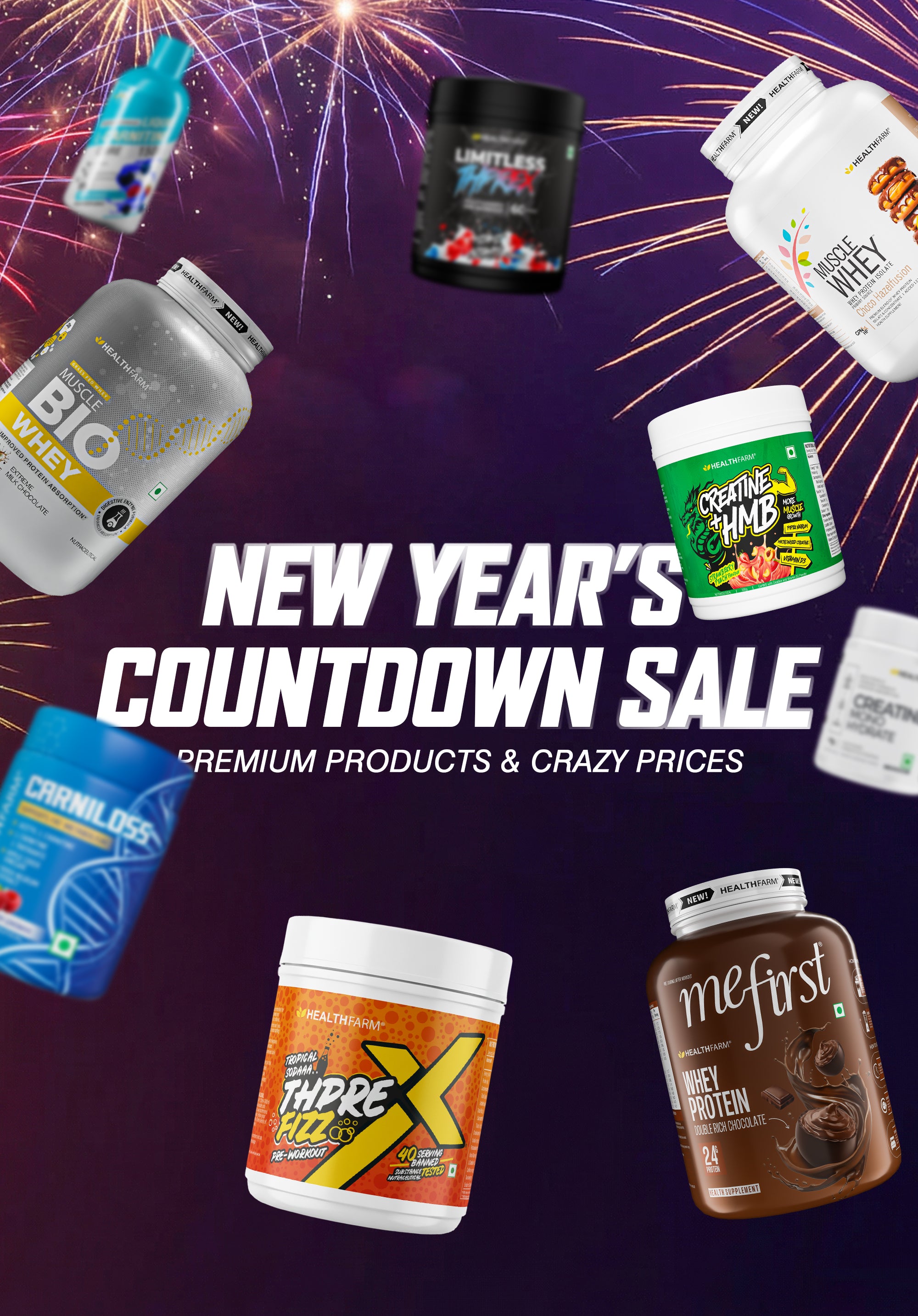 Healthfarm Muscle Whey (2Kg) + Shilajit (20g) + Thprex + Free Shaker